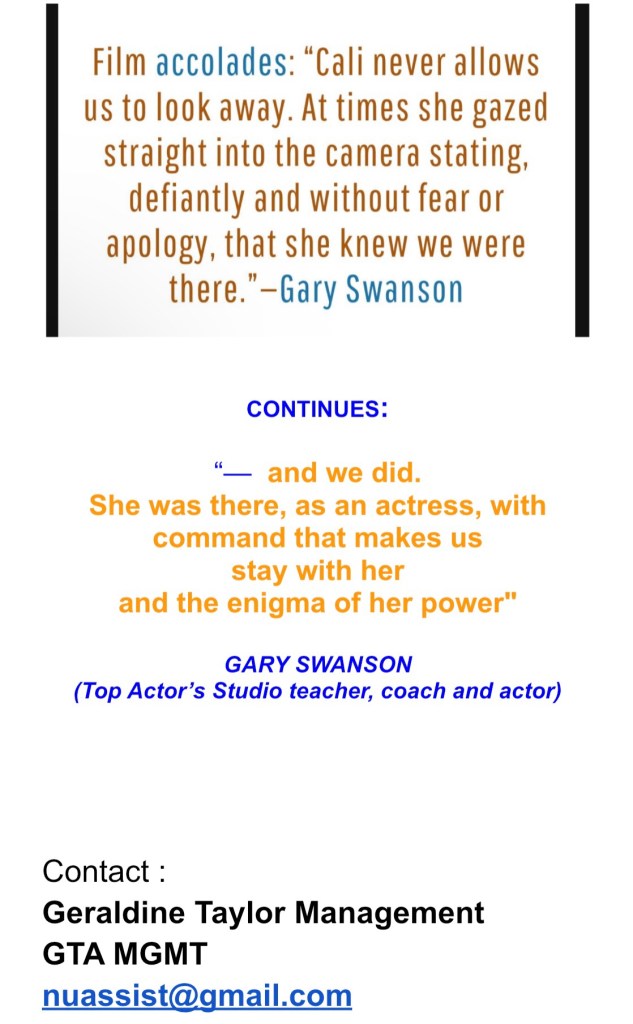 Cali Lili Hauser ; Multiple International Award Winning Actress